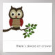 Diese niedliche Eule aus Cartoon, die auf einem Ast mit grünen Blätter sitzt, ist auf einem ganz weißen Hintergrund. Unten steht ein Sprichwort, in dem steht: "Es gibt immer eine Antwort