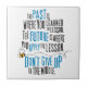 Aufmunterndes Zitat, mit spielerischer Typografie. "Die Vergangenheit ist, wo Sie die Lektion lernten, die Zukunft ist, wo Sie die Lektion anwenden, aufgeben nicht in der Mitte", die für Studenten groß ist!