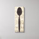 © Pela Studio / Wilder Apple. Ein Bild mit einer schwarzen Silhouette eines Löffels. Ein bräunlicher Hintergrund mit Wörtern ist auf dem Bild zu sehen.
