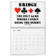 Wenn du Bridge spielst und Spaß wiedererkennt, genießt du diesen 20XX Kalender, der dir das Lächeln am Bridge-Tisch und darüber hinaus behalte. Mit 12 verschiedenen Bridge-Redewendungen und einem Bonus-Sprichwort auf der Rückseite. Lassen Sie andere das lustige Bridge-Spaß mit einer Dose Bridge mit diesem "Humorvollen Bridge-Redewendungen 20XX Calendar" doppelt genießen! Stellen Sie vor dem Kauf das richtige Jahr auf das Cover ein.