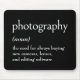 Eine Wörterbuchdefinition von FOTOGRAFIE ist in fett weißem Text auf schwarzem Hintergrund. Die Hintergrundfarbe kann geändert werden.