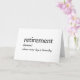 Eine Wörterbuchdefinition von RETIREMENT ist in fett schwarzem Text auf weißem Hintergrund. Die Hintergrundfarbe kann geändert werden. Inside text ist bearbeitbar.