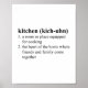 Vergnügungs-Küche typografische Wandkunst mit einer liebevollen Wörterbuchdefinition Bedeutung des Wortes KITCHEN