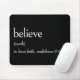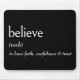 Eine Wörterbuchdefinition von BELIEVE ist in fett weißem Text auf schwarzem Hintergrund. Die Hintergrundfarbe kann geändert werden.