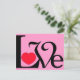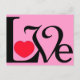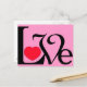 Eine Postkarte mit rotem Liebe für den Buchstaben oder im Wort vor einem rosa Hintergrund. Eine Art, die Liebe zu verbreiten.