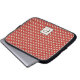Einfach und dennoch dekorativ, fügt dieses Design aus grafisch gewebtem Rattan die persönliche Touch zu Ihrem Laptop-Ärmel hinzu! Die Hauptfarbe ist rot, und der solide cremefarbene Hintergrund kann von Ihnen aufgezeichnet werden. Ändern Sie die Grundfarbe dieses Produktes, um neue Effekte zu spielen! Der benutzerdefinierte Initial wird auf einem hellen Quadrat mit schwarzem Rand platziert. Text kann leicht angepasst werden, das gesamte Monogramm kann neu positioniert oder entfernt werden. Auch Schriftart, Größe und Farbe können angepasst werden. Dieses Design ist in Blassorange, Orange, Rot, lila oder Silber gehalten.