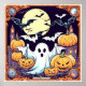 Fantastisch geiles Halloween. Ein großer Mond mit Freunden Geister, Kürbisse und Fledermäuse.