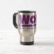 Wow-Reise-Kaffeetasse, silbern und schwarz mit dem wow-Logo.