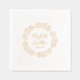 Diese wunderschöne Papierserviette, in Goldfolie gestempelt, besticht durch einen markanten Kranz aus feinen, gravierten Blätter und bietet einen raffinierten und zeitlosen Sake für Ihren Hochzeitstag. Fügen Sie die Namen und das Hochzeitsdatum der Braut und Bräuche hinzu, um diese Tischserviette wirklich einzigartig und persönlich zu Ihrem besonderen Tag zu machen.