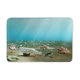 Ein Schiff in einer Flasche sank in den flachen Ozean, umgeben von Muscheln und von Sonnenstrahlen beleuchtet.