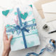 Dieses Foto glänzende Papier hat diagonale Reihen von drei türkisfarbenen Tonherzen und türkisfarbene Punkte auf weißem Hintergrund sowie eine halbtransparente Ebene und Streifen mit dem Wort "Hochzeit". Dieses Geschenkpapier ist ein eleganter Gegenstand, um Ihre Geschenke zu verpacken, sowie ein schönes Geschenk an sich jemand Besonderes. Sie können ihn auch mit Karten, Aufklebern und Briefmarke von Artcor7Cards abgleichen.
