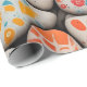 Colorfully painted stones cover this pretty wrapping paper.