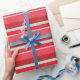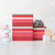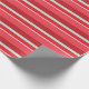 Dieses Verpackungspapier hat Retro-Vibes mit einem Weihnachtsstreifen-Muster. Die Streifen sind rosa, rot, blau und Rose.