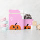 A cute hand drawn illustration of festive blend of ghosts and pumpkins on a vibrant pink background, evoking a playful Halloween spirit.