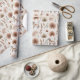 "Wrapping paper with a pattern of brown and white horses and abstract flowers. The top image shows the paper partially unrolled, while the bottom displays it flat."
