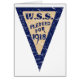 W.S.S., War Savings Briefmarke Poster aus dem Jahr 1918. Die W.S.A. waren die Kriegsanleihen des ersten Weltkrieges. Ein invertiertes Dreieck mit den Wörtern W.S.S. Verpfändet für 1918 in der Mitte. Das Design wurde leicht gestört.
