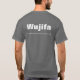 Dieses ist das Wujifa T-Shirt mit Wujifa in den großen Buchstaben auf der Rückseite und das Wujifa Sprichwort "Sie sind, wo Sie sind und das ist, wo Sie" unter ihm beginnen.