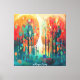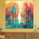 Ein abstrakter, farbenfroher Wald.