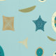 Mikroskopische Diatome, Algen in Single-Form mit einer Zellenwand aus Kieselsäure, erzeugen ein lustiges Muster auf einem Meer von helltürkisfarbenen und zeigen einige der vielen Formen, in die sie kommen, inklusive Kreise, Sterne, Quadrate und andere.