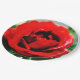 Herrliche rote Rose mit Morgentauben. Schöne rote Rose im Garten. Die rote Rose symbolisiert Liebe, Leidenschaft, Romantik und Hingabe.