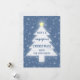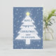 Blauer und weißer Weihnachtsbaum mit gelbem Stern und fallendem Schnee. Ändern Sie einfach jeden Text.
