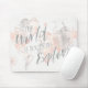 Ein niedliches Watercolorporträt der Welt mit einer weichen Typografiephrasenüberlagerung. Künstler: Laura Marshall