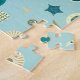 Mikroskopische Diatome, Algen in Single-Form mit einer Zellenwand aus Kieselsäure, erzeugen ein lustiges Muster auf einem Meer von helltürkisfarbenen und zeigen einige der vielen Formen, in die sie kommen, inklusive Kreise, Sterne, Quadrate und andere.