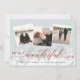 Die elegante Urlaubskarte besteht aus drei quadratischen Fotos in einem Collage-Layout, mit einem kleinen, lichtdurchfluteten Overlay für ein festliches und blubbly-Look. "Es ist ein wundervolles Leben" wird überlagert in lebendigen Cranberry rotes Skript und Blockschrift, mit Ihrem Namen und dem Jahr darunter. Karten kehren zu einem festlichen roten botanischen gemusterten Hintergrund zurück.