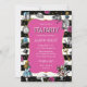 Alice im Wunderland themed Tea Party Un Birthday Einladung, mit dem Mad Hatter, Cheshire Cat, Alice und das Kaninchen. Passen Sie den Text für Ihren ganz besonderen Tag an. Dieses Design ist in heißen rosa mit schwarz-weißen Streifen dargestellt. Es ist in anderen Farben und Hintergründen erhältlich.