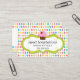 © Persönlichkeit des öffentlichen Lebens-Entwürfe 2011. Unser wunderlicher Kuchenbäckerei-Visitenkarteentwurf hat einen bunten Diamanthintergrund, einen kleinen Kuchen mit rosa Zuckerglasur und Kirsche auf die Oberseite.