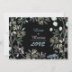 Es ist grundlegendes Mathe, aber oh richten Sie so aus: die Summe der zwei von Ihnen ist LIEBE. PastellBlumen und Blätter glänzt heraus gegen einen schwarzen Hintergrund, wie ein Party nachts, oder möglicherweise färbte Pastell Kreide gegen eine Tafel. Eine Spaßhochzeitseinladung, vervollkommnen für Frühlingshochzeiten.