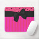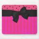 Hübsche rosa und schwarze Mausunterlage getan in den Streifen und in den Polkapunkten, wenn einem großen hübschen schwarzen Band und ein Bogen über die Breite gehen, der Mausunterlage. Sehr hübsch für zu Hause oder im Büro.