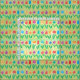 Frühling ist in der Luft mit diesem Gewebe, welches die wunderlichen Tulpen kennzeichnet, die mit Spaßmustern einschließlich Polkapunkte, Streifen und Wirbel, in den Schatten von Rotem, von Blauem, von Orange und von Lila auf einem grünen Hintergrund verziert werden.
