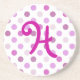 Wunderliche Monogrammstein-Untersetzer, mit einem rosa und weißen Polkapunktentwurf. Eine große rosa Initiale des Buchstaben, in der Mitte, ist kundengerecht. Personifizieren Sie mit dem Buchstaben Ihrer Wahl. Große Untersetzer für jeden möglichen Raum des Hauses und ein Set würden ein reizendes Geschenk für irgendeine Gelegenheit machen.
