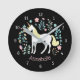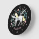 Wunderlicher Unicorn u. Blumen-schwarzes Runde Wanduhr