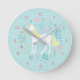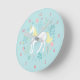 Wunderliches Unicorn-u. Blumen-Aqua Runde Wanduhr