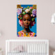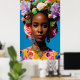 Ein Bild einer wunderschönen Afrikanerin mit Blume im Haar und dekorativer Halskette. Dieses Bild wurde von AI mit Blumendesign erstellt.