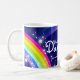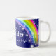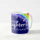 Helle und farbenfrohe Regenbogentochter-Tasse. Perfektes Geschenk für Ihre lebendige und wunderbare Tochter. Die Tasse lautet: "Wunderbare Tochter, die du unser Lichtstrahl von Schönheit und Licht bist". Tasse, die exklusiv von Sarah Trett entworfen wurde.