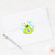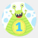 Niedliche und lustige Erstgeburtsticker mit einem fröhlichen, grünen, gestreiften Monster oder einer Alien mit einem blauen "1" auf einem gelben, whimsikalen Kreis mit einem orangefarbenen Punktbauch. Das Monster ist glücklich und sieht aus, als ob er jubelt. Helles und farbenfrohes Design für Kinder, großartig als dekorative Aufkleber oder als Umschlag Aufkleber für kleine Jungen oder Mädchen Erstgeburtstag-Einladungen. Es stehen weitere Produkte zur Koordinierung zur Verfügung.