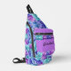 Diese Sling Tasche zeichnet sich durch herrliche Hydrangea-Blüten aus, die zu einem üppigen, blumigen Muster kombiniert werden. Für alle Blume Liebhaber! Farben in Turkouise, Lavendel, blau. Benutzerdefinierter Text und Farbe!