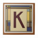 Set deinen Tee oder Kaffee auf diesem großartigen Untersetzer. Es verfügt über einen dekorativen Kunsthandwerkstil Buchstaben K in Bungalow-Herbstfarben. Dieser Stil war in den 1900er Jahren, als William Morris, Stickley und Frank Lloyd Wright arbeiteten, in der Jahrhundertwende in Mode.