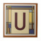 Set deinen Tee oder Kaffee auf diesem großartigen Untersetzer. Es verfügt über ein Dekor Art & Crafts Stil Buchstaben U in Bungalow Herbstfarben. Dieser Stil war in den 1900er Jahren, als William Morris, Stickley und Frank Lloyd Wright arbeiteten, in der Jahrhundertwende in Mode. Ändern Sie die Farbe der Außenränder in eine beliebige Farbe.