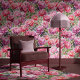 Schöner Sommergarten mit hellrosa und lila Aquarellbäumen auf zartem, zartem, rosa Hintergrund