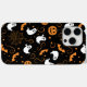 Whimsisches Halloween-Muster gefüllt mit spielerischen Kürbissen, schelhaften Geistern, flatternden Fledermäusen und funkelnden Sternen.