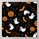 Whimsisches Halloween-Muster gefüllt mit spielerischen Kürbissen, schelhaften Geistern, flatternden Fledermäusen und funkelnden Sternen.