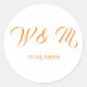 Die perfekte Aufkleber für Ihr Projekt, dieses Element ist ein weißes und wunderschönes orangefarbenes Schema. Orangefarbener Schriftart auf weißem Hintergrund, die Initialen des Paares sind in der Mitte mit dem darunter liegenden Hochzeitstag. Wählen Sie aus verschiedenen Formen. Personalisieren Sie Ihre noch heute!