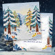 Eine süße Weihnachts- oder Festtagskarte mit einer atemberaubenden Winterlandschaft eines Waldes im Winter mit einem Impasto-Papier-Quilling-Ästhetik. Auf der Rückseite befindet sich ein festliches Weihnachtsgedicht, das Sie unverändert lassen oder bearbeiten und mit Ihren Namen unterschreiben können.