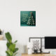 Ein wunderschönes goldenes Drehbuch auf einem eleganten grünen Poster mit einem Weihnachtsbaum, das die einzigartige Illusion eines 3D-Aussehens mit einem hübschen Stern an der Spitze dieser Feiertagsdekor verleiht. Ein modernes, handgeschriebenes Kratzen über Ihrer personalisierten Botschaft für einen trendigen Willkommensdruck.