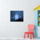 Digitales Kunstwerk, das nachts einen unheimlichen dunklen Winterwald darstellt.