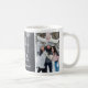 Schöne typografische Foto Tasse verfügt über ein familiäres Foto. "Es ist die schönste Zeit des Jahres" erscheint in weißer handgeschriebener Typografie auf einem kohlegrauen Kalkboard-Hintergrund mit weißen Schneeflocken.